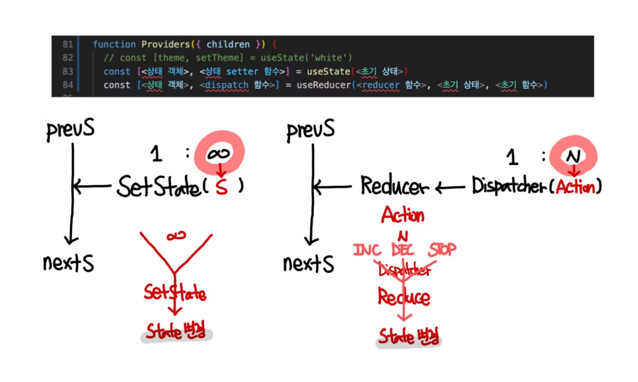 [State, Dispatch] = useReduce이런식으로 사용한다
