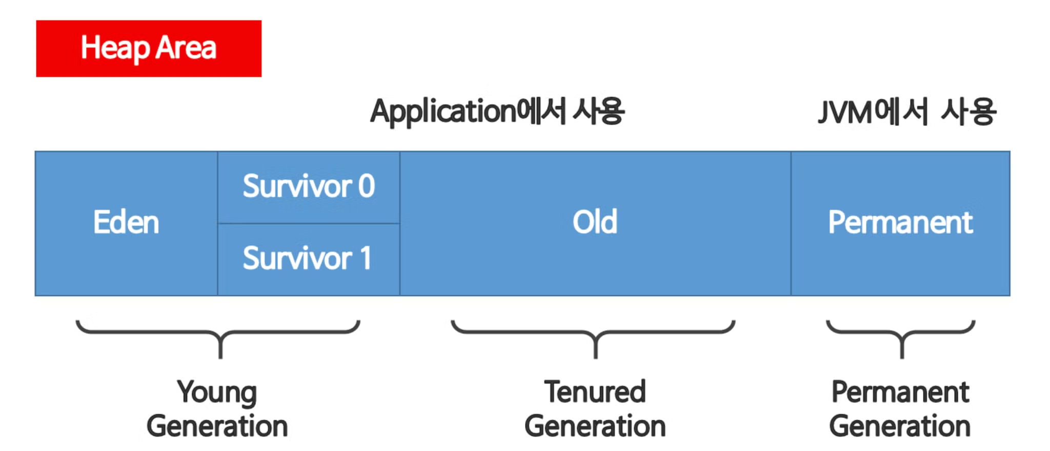 - 효율적으로 동작시키기 위해 Heap 영역을 크게 2개의 물리적 공간으로 나눈다